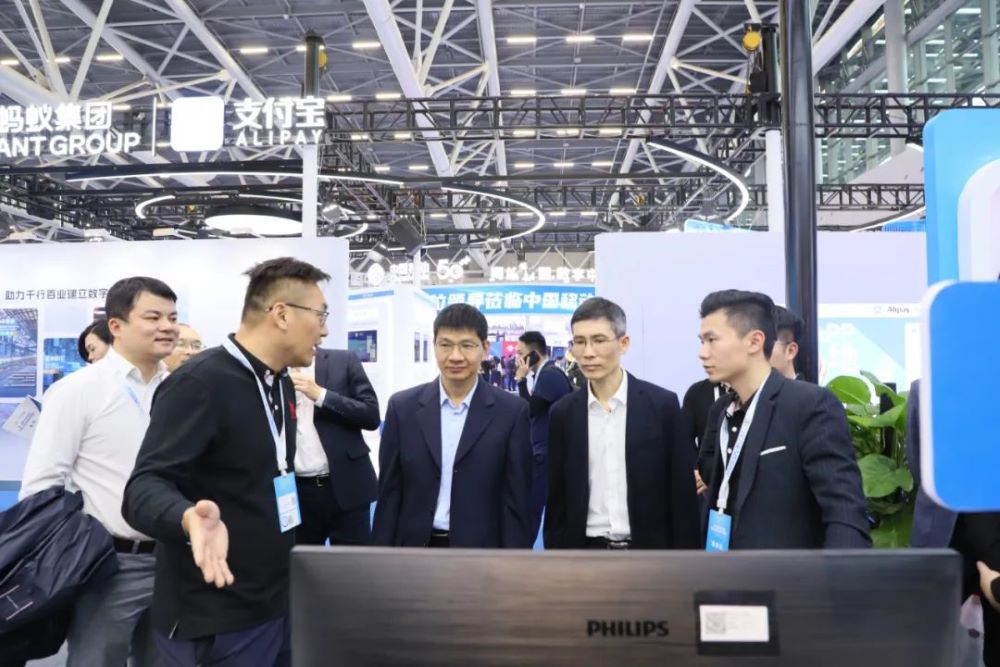银河智能展位吸引了诸多领导和嘉宾,其中,广东省揭阳市委副书记、市政府党组书记、市长支光南,安徽省数据资源管理局党组书记、局长朱诚,广东省政府接待办公室秘书处处长胡圣满,番禺区政府杨少华副区长,黄埔区政数局局长王薇等相关领导莅临银河智能展位指导交流,银河智能董事长孙超对各领导的莅临指导表示热烈欢迎,并热情介绍了公司参展的创新应用成果。